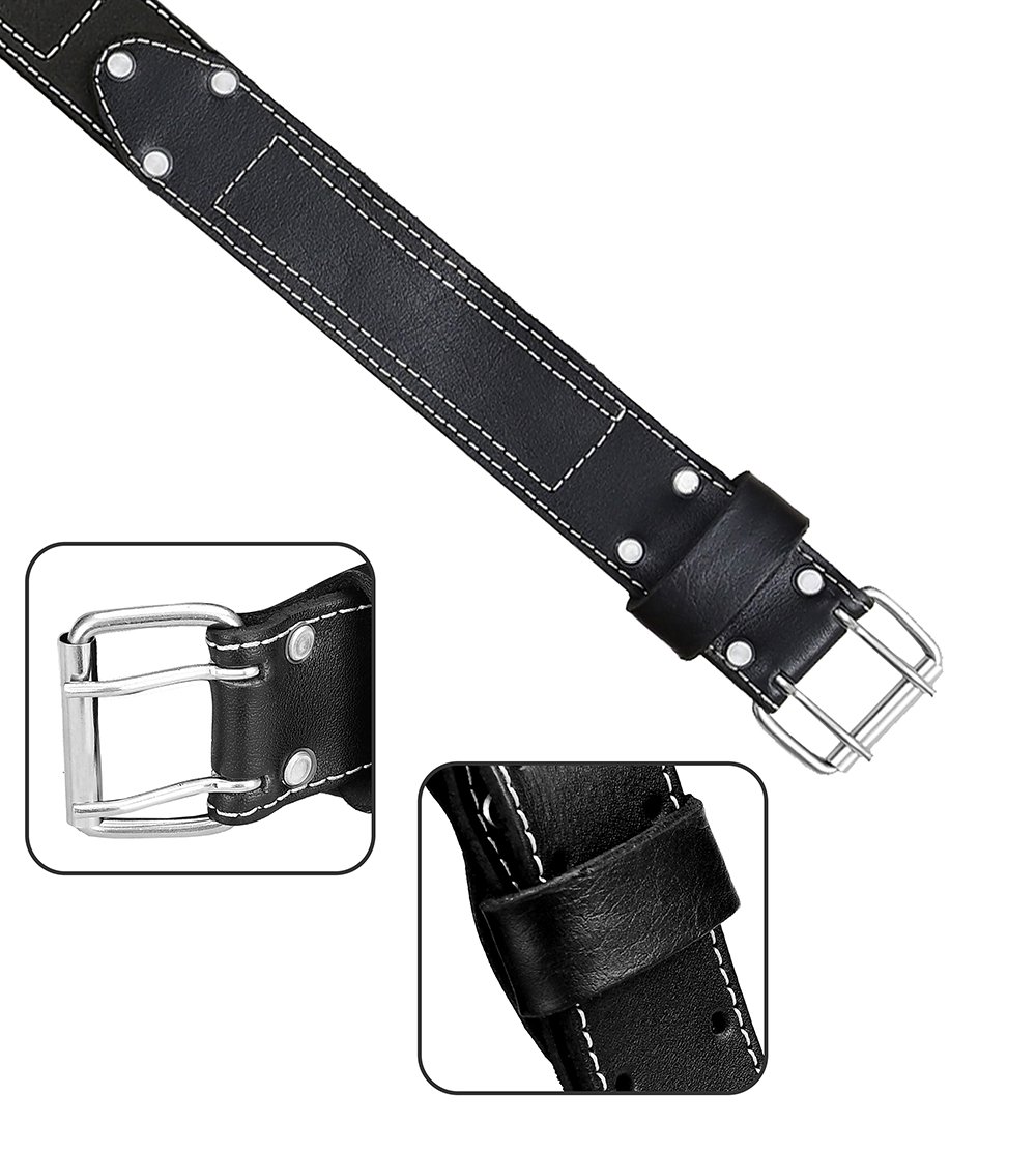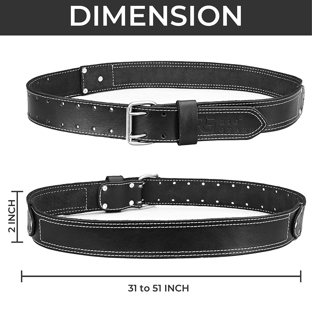 SMART DESIGN: This 2-inch heavy-duty leather belt features a sturdy two-prong roller buckle, fits waists 34–49 inches, and offers adjustable holes for a perfect fit. Available in black and maroon, it combines durability, comfort, and practical functionality for any job.