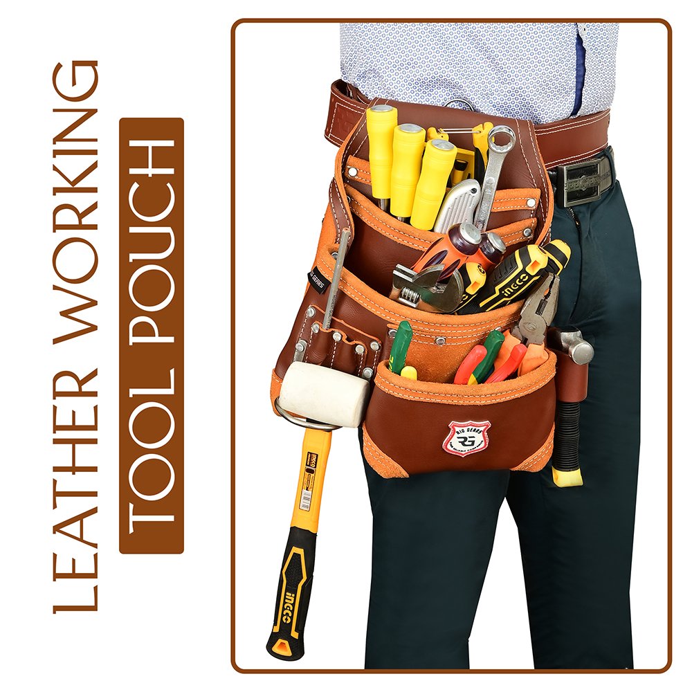 Zanvok ZV-5 Pro Brown Leather Tool Pouch With Belt – 17 Pockets Combo
