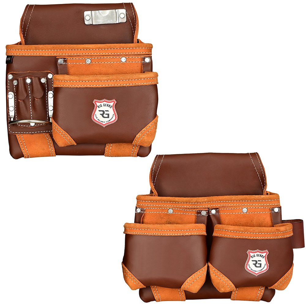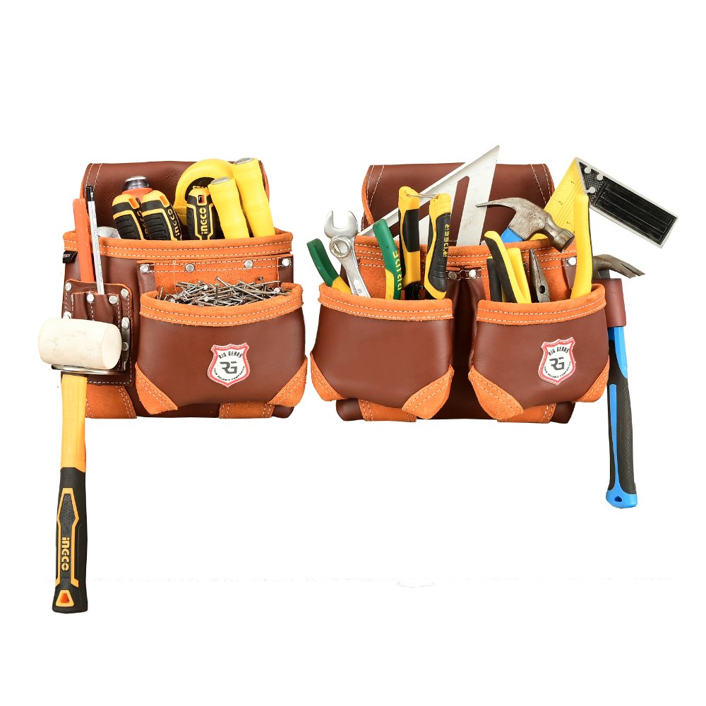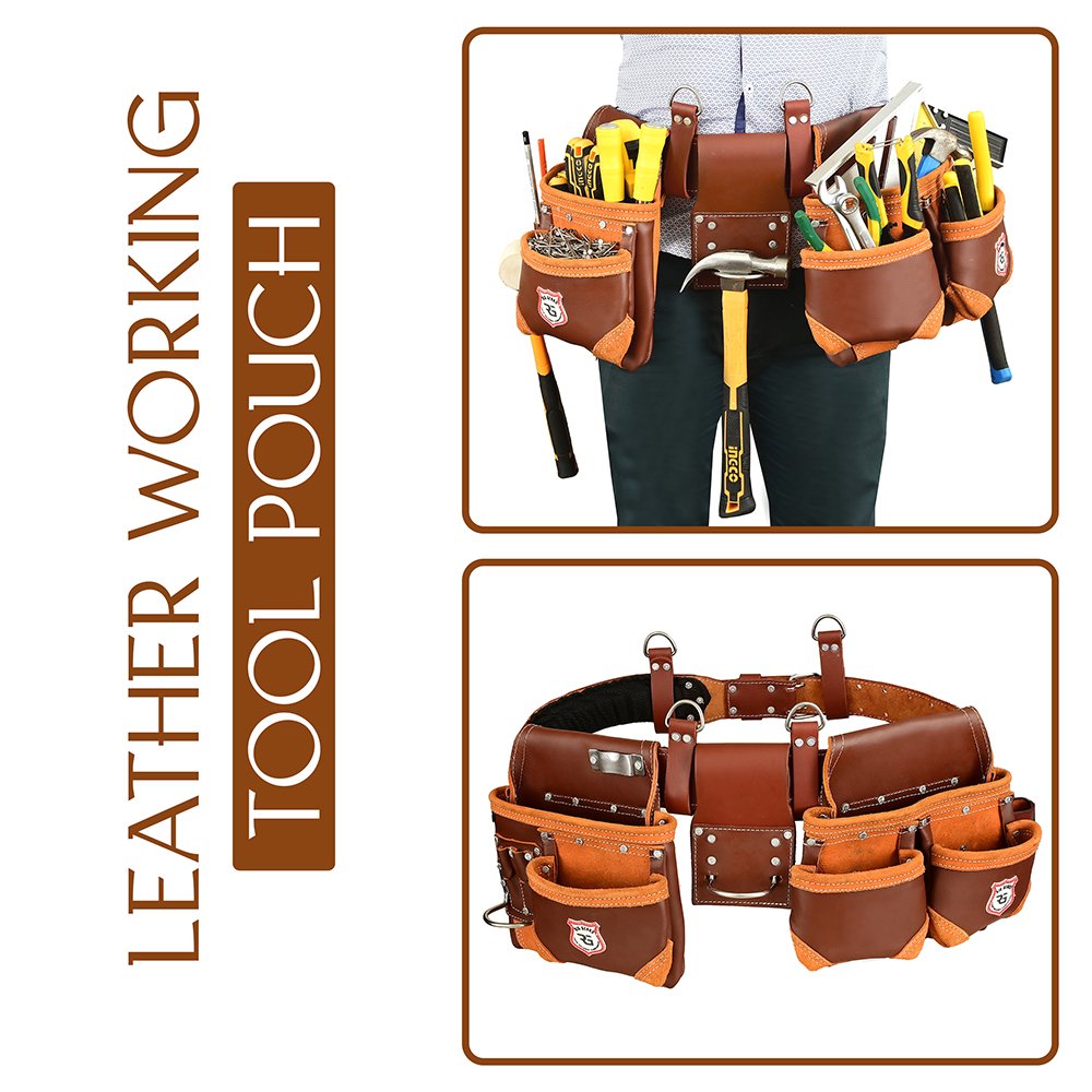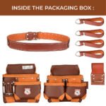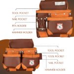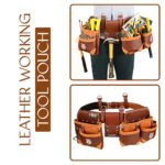 Home Leather Tool Pouch Double Tool Pouch Zanvok ZV-7 Pro Brown Leather Tool Belt – 11 Pockets
